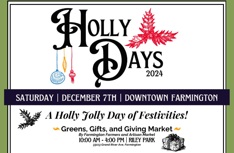 Back to All Events Farmington Holly Days Saturday, December 7, 2024 10:00 AM 4:00 PM Google Calendar ICS